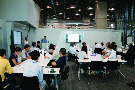 自社を分析し、グループ共有します。自社の現状と望む方向性についてイメージを膨らませます。グループディスカッションを交えながら、ワークシートを完成させていきます。