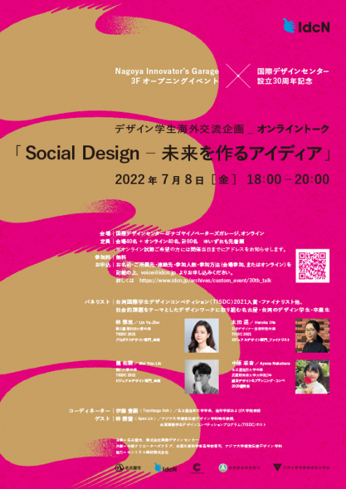 国際デザインセンター設立30周年記念事業の一環として、「未来を作るアイディア」をテーマに、名古屋と台湾の学生、デザイナーをオンラインで繋ぐトークイベントを開催。