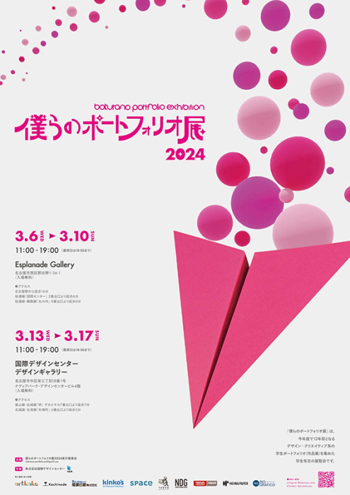 | 問い合わせ先 | 僕らのポートフォリオ展2024実行委員会 bokurano.portfolio.exb@gmail.com、デザインギャラリー(会期中会場専用tel052-265-2126) |