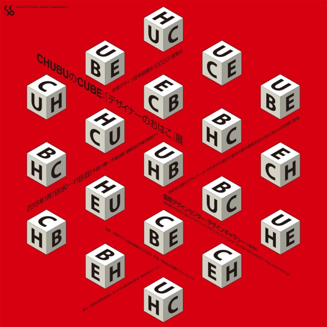 中部デザイン団体協議会は、愛知県内に所在するデザイン関連団体で構成される協議会で、この展覧会では、CUBEをキーに、デザイナーが発想力を競います。各デザイン分野ならではの専門性や、各分野からの視点で立方体の空間を表現します。