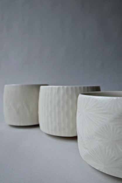 ◎作家より:近頃はいろいろな模様を彫り込むことにチャレンジしています。定番の器と共に、新たな「彫り模様」を是非ご高覧下さい。