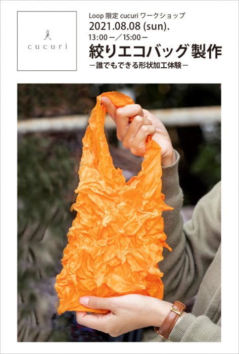 今回は、14期に期間出店する(7月13日~8月22日)「cucuri」が、誰でもできる形状加工で絞りのエコバッグを作るワークショップを開催します。