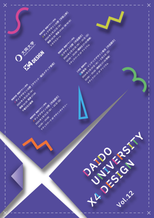 「×4 DESIGN」は、大同大学工学部建築学科の建築専攻・インテリアデザイン専攻、情報学部情報デザイン学科のメディアデザイン分野・3Dデザイン分野の4分野の学生による作品展示・イベントで、卒業制作を含む学生の作品およびパフォーマンスが市内各所で発表されるものです。