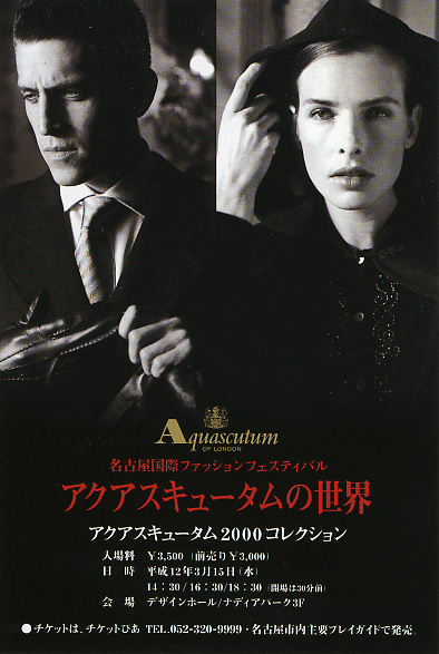 3月14日(火)15:30〜デザインホールで、ワールドファッションセミナー「ライフスタイルの原点」(2,000円)を、15日(水)デザインホールで、梅宮アンナ、古賀正紘らをゲストモデルに迎え「アクアスキュータム2000コレクション」(前売3,000円)を開催。