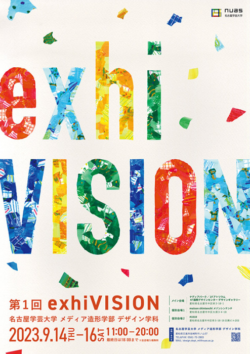 問い合わせ先 名古屋学芸大学メディア造形学部デザイン学科tel0561-75-2803、design.dept_ml@nuas.ac.jp、デザインギャラリー(会期中会場専用tel052-265-2126)