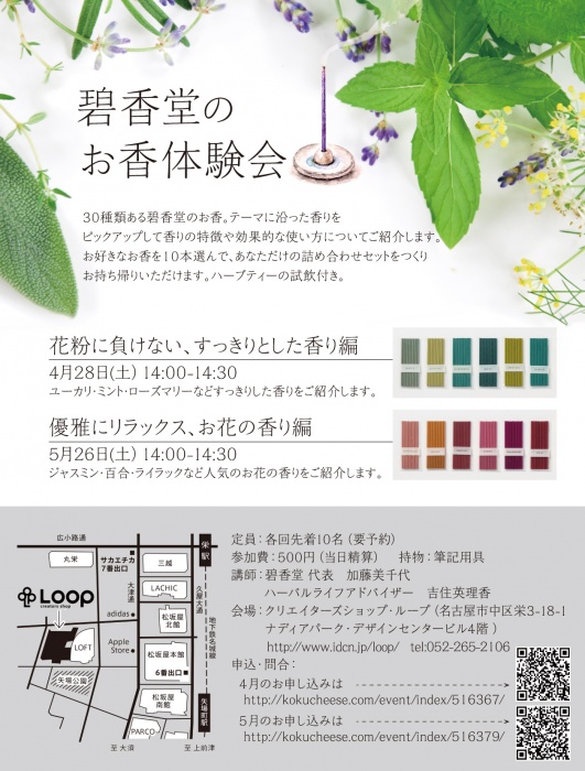 関連コンテンツ 碧香堂のお香体験会「優雅にリラックス、お花の香り編」(イベントスケジュール)