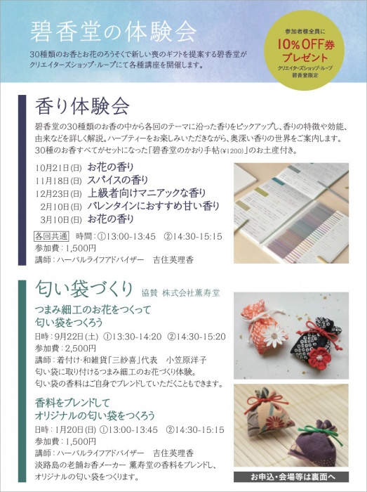 ※参加者全員にループ・碧香堂限定10%OFF券をプレゼント。