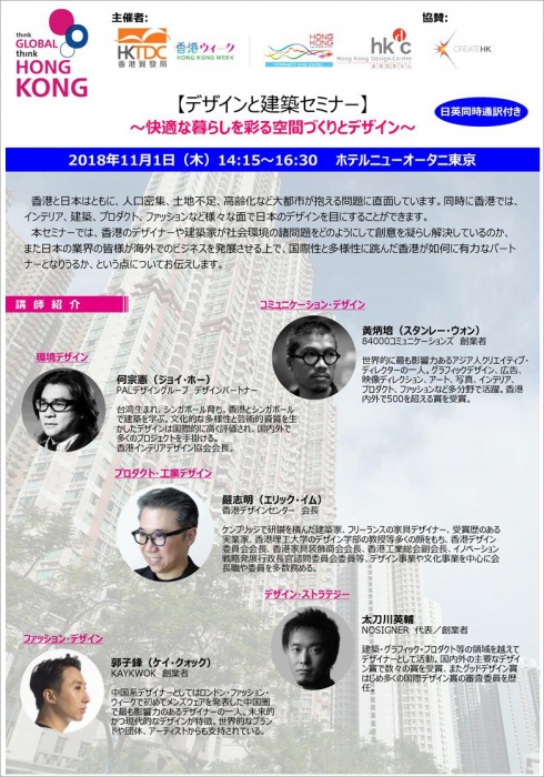 香港貿易発展局主催による国際シンポジウムの一環として開かれるデザイン・建築セミナー。