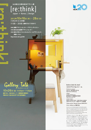 IdcN設立20周年記念デザイン展 “re:think” Japan+Korea|Design(イベントスケジュール) IdcN設立20周年記念デザイン展 [re:think] Japan+Korea|Design 開催レポート(コラム) IdcN設立20周年記念事業 |