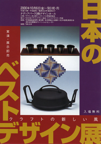 | 共催・後援など | 後援=中部通商産業局、愛知県、名古屋商工会議所、社団法人中部経済連合会、財団法人名古屋観光コンベンションビューロー、協賛=株式会社丸栄、協力=社団法人日本クラフトデザイン協会、クラフトデザイナー協会中部 |