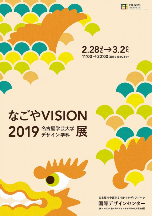 名古屋学芸大学メディア造形学部デザイン学科3年次学生による「これからのNAGOYA=なごやVISION」を提案するデザイン展。ビジュアルコミュニケーションデザイン、スペースデザイン、プロダクトデザイン、デザインプロデュースの4領域のいずれかに属する学生の作品を展示。