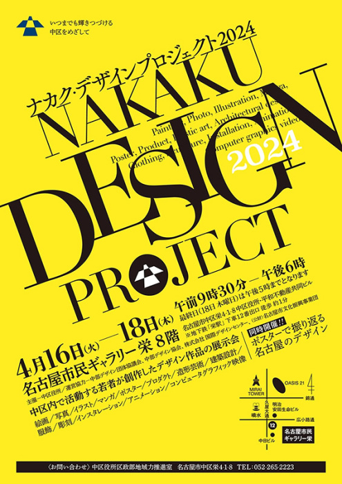 名古屋市中区の若者の芸術活動の発信の場「ナカク・デザインプロジェクト2024」。デザインを学ぶ学生たちの取組みの発表や、デザイン関係団体によるデザインの発信と交流の場を提供することで、次世代を担う学生のデザインへの意識向上や、学校と関係団体がつながりを深めるとともに、広くデザインの重要性を理解し、大切にする風土づくりをすすめることを目指し開催。中区の風景や印象、中区の将来像などをテーマ、モチーフ(着想)としたデザイン作品が展示されます。