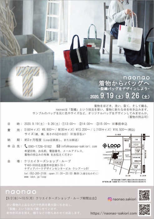 naonao「着物からバッグへー裂織バッグをデザインしようー」(9月19日)(イベントスケジュール)