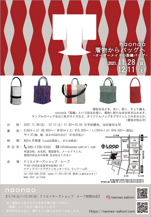 naonao「着物からバッグへーオーダーメイドの裂織バッグー」(フライヤー・イメージ)