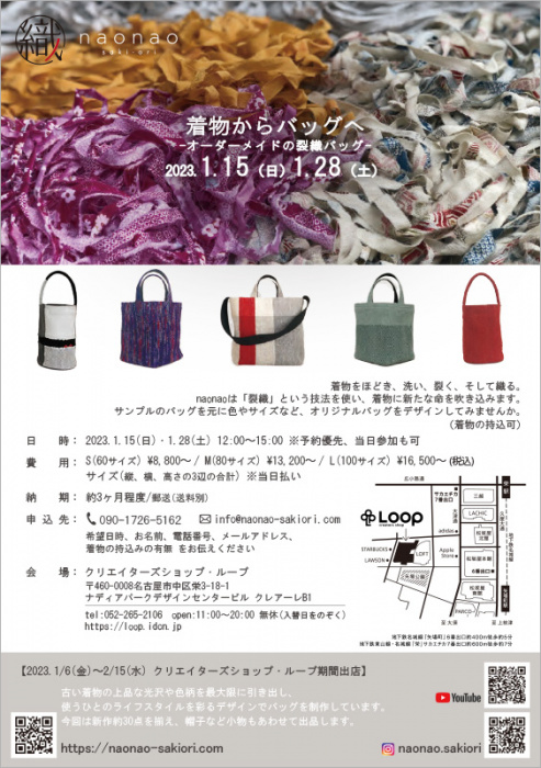関連コンテンツ naonao「着物からバッグへーオーダーメイドの裂織バッグー」(1月15日)(イベントスケジュール)