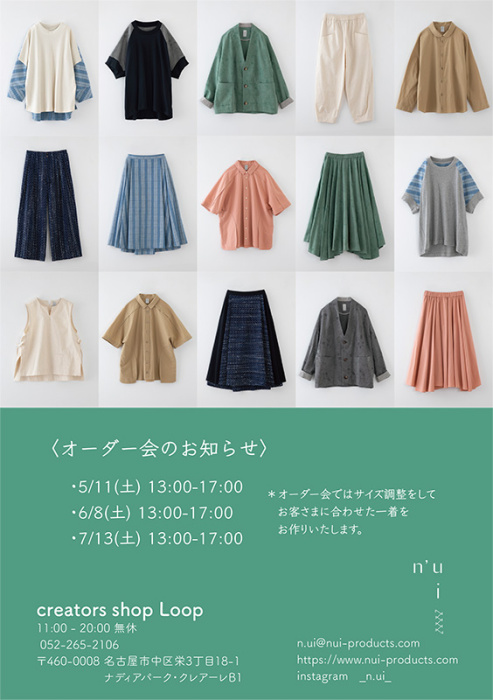 n’ui n’ui オーダー会(5月11日)(イベントスケジュール) n’ui オーダー会(6月8日)(イベントスケジュール) |