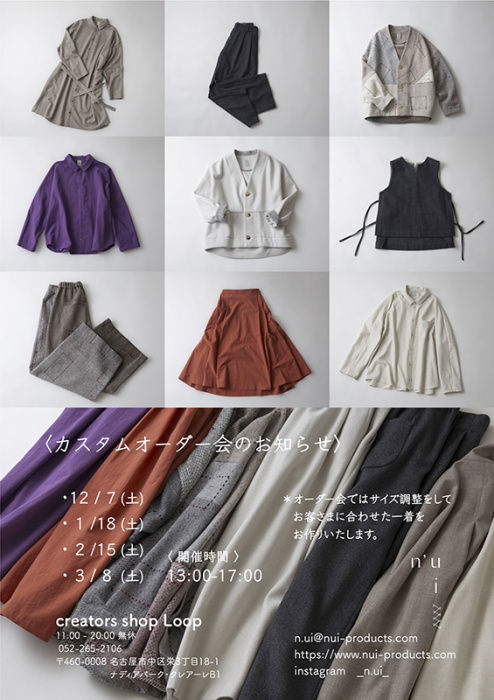 | 問い合わせ先 | クリエイターズショップ・ループtel052-265-2106、n’ui n.ui@nui-products.com |
