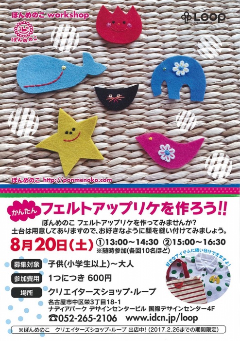 ぽんめのこワークショップ「かんたんフェルトアップリケを作ろう!!」