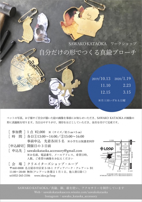 SAWAKO KATAOKA ワークショップ「自分だけの形でつくる真鍮ブローチ」