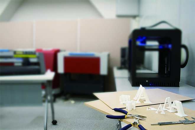 Cコースは、企画・開発担当者、技術者、デザイナーなど、3D機器に興味のある方、導入を検討したい方を対象とした講座。グループによるワークショップ形式で、アイデアを出し合いながら、データづくりから、3Dプリンター、レーザーカッター、カッティングマシンの特性を活かしたプロトタイプをつくります。