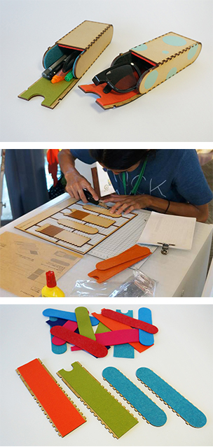 今回は、8期初出店の空間設計、プロダクトデザインを手がける「TAB」が店頭でも人気の「ZIGZAGケース」を制作するミニワークショップを開催。レーザーカッターで制作されたパーツをカットして組み立てるZIGZAGケース、通常商品では一色のフェルトカラーを、ワークショップではパーツごとに違う色にすることもできます。また、ワークショップ限定でステンシルやペイントでオリジナルの柄を描くことも。