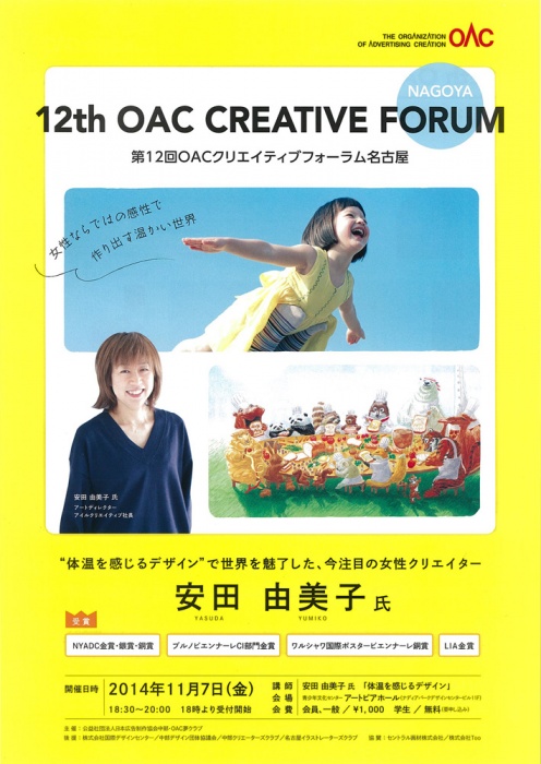 公益社団法人日本広告制作協会中部支部(OAC)主催によるフォーラム。広告業界、特に現場のクリエーターに活力を与え、広告が景気高揚の一助になることを願い、開催。現役で活躍中の講師が、作品を通して、広告制作の今、独自のクリエイティブ論を披露する、より現場寄りの実務に役立つフォーラムとして企画。