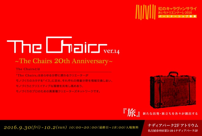 モノづくりのプロの異業種クリエーターズネットワーク「The Chairs」の椅子の展覧会、The Chairs ver.14「旅」が開かれます。