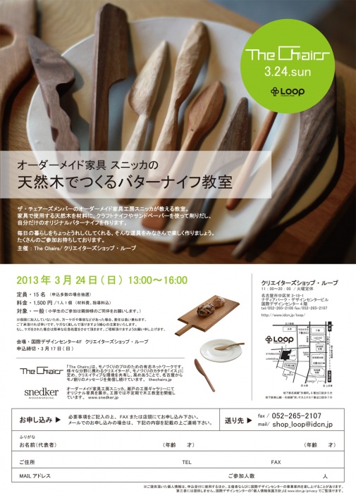 オーダーメイド家具スニッカの「天然木でつくるバターナイフ教室」