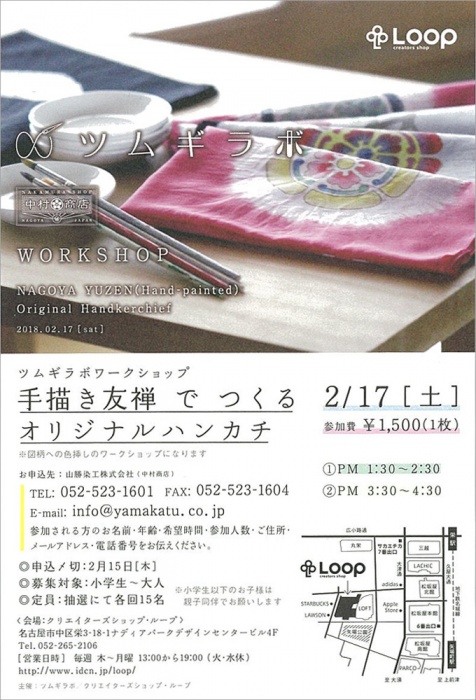 | 問い合わせ先 | クリエイターズショップ・ループtel052-265-2106、山勝染工株式会社(中村商店)tel052-523-1601、fax052-523-1604 |