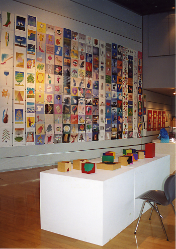 今回の展覧会では、ポスター・絵本・立体・映像と、アイデア豊かにクロスするユーモアの四角な関係をご覧ください。