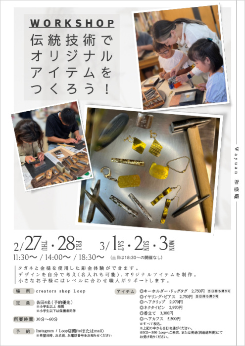 Wayuan 和悠庵 Workshop「伝統技術でオリジナルアイテムをつくろう」