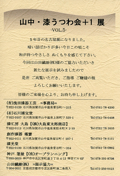 山中・漆うつわ会+1展 VOL.5